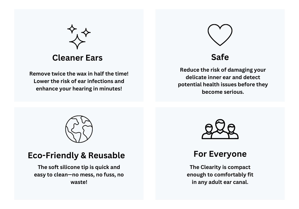 Clearity features a 1080P quality camera for unparalleled clarity, allowing you to see every detail inside your ear. The built-in LED light enhances visibility, making it easier to navigate and clean effectively. Experience superior ear hygiene with precision and ease.